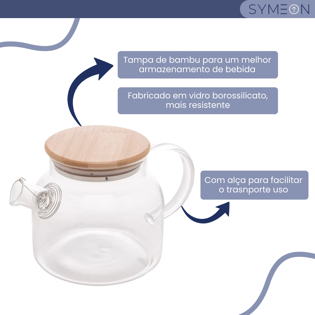 Chaleira de Vidro Tampa de Bambu 1300ml