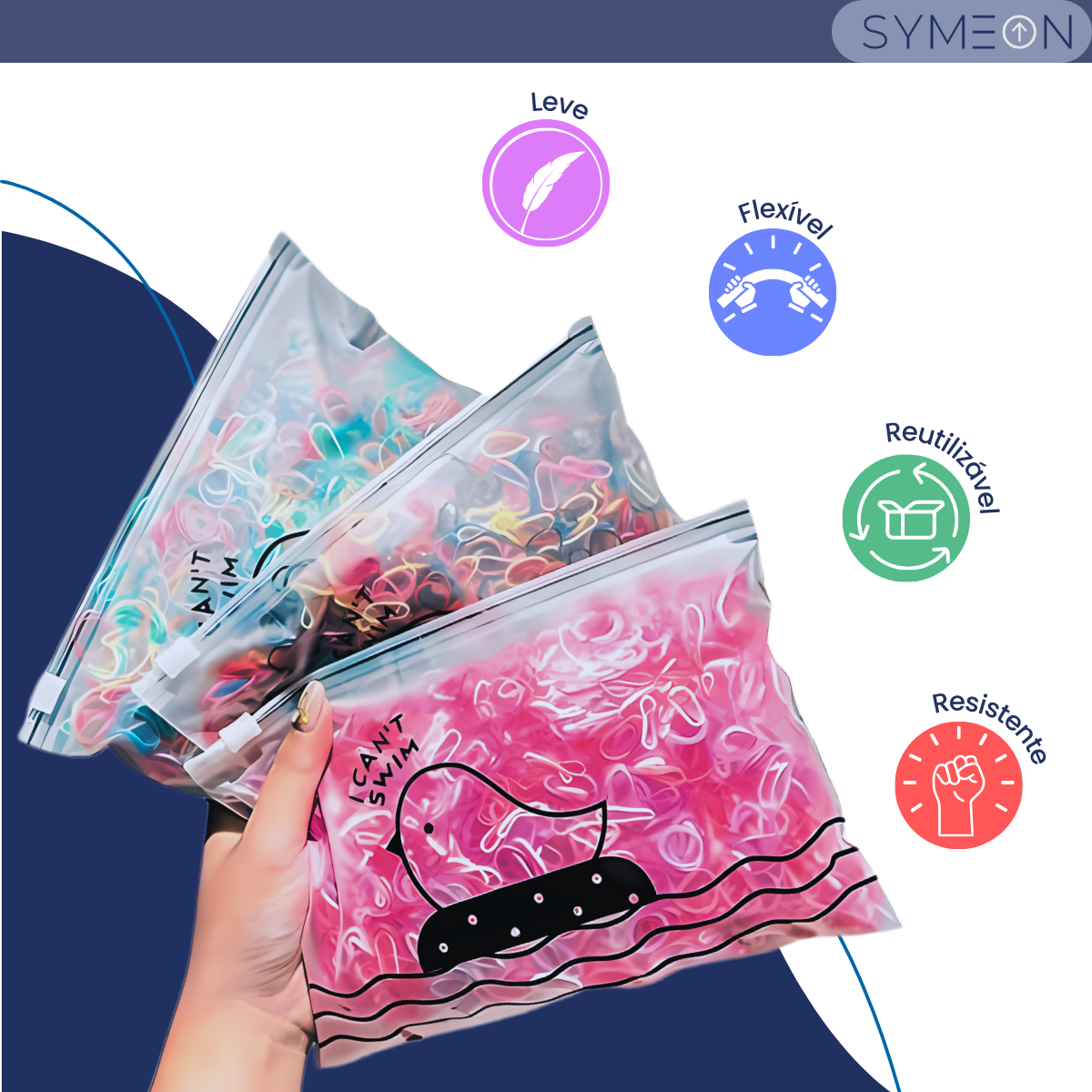 O Kit com 500 Elásticos de Silicone é perfeito para penteados criativos, delicados e duradouros. Leves, resistentes e super versáteis, esses elásticos são ideais para o dia a dia ou uso profissional. Acompanha um estojo prático com zíper, que facilita o armazenamento e transporte.