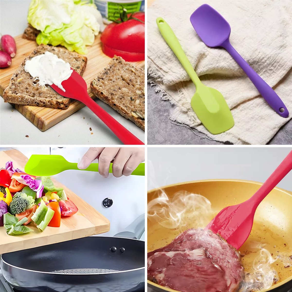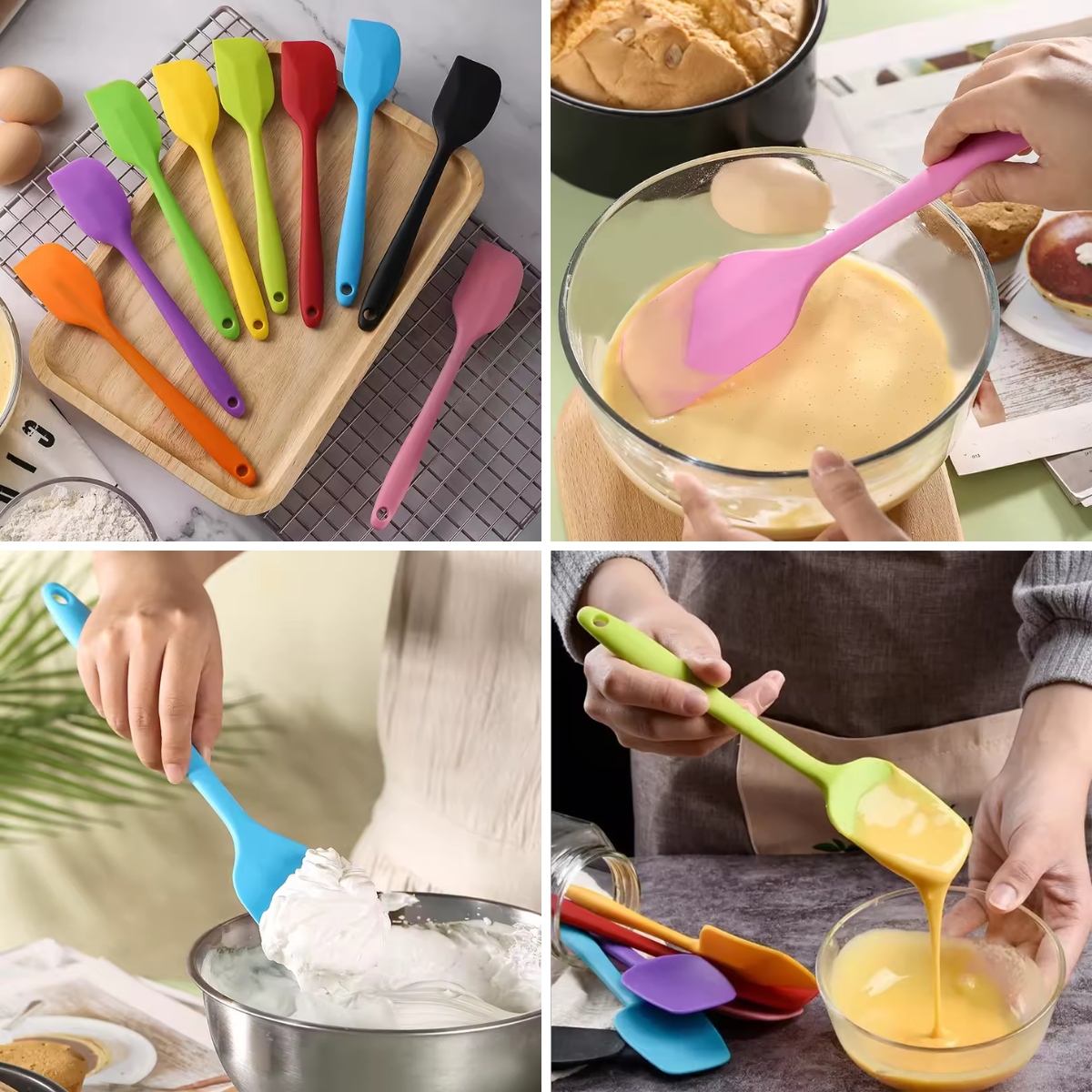 O Kit de Espátula de Silicone Colorido 27cm é ideal para quem busca praticidade, resistência e cor na cozinha. Leves e duráveis, as espátulas são perfeitas para misturar massas, raspar recipientes, mexer preparos em panelas antiaderentes e auxiliar em receitas doces ou salgadas.